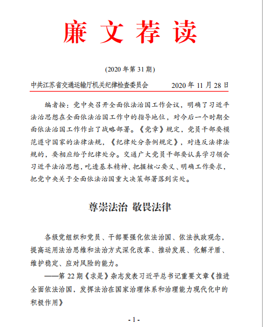廉文荐读第31期——尊崇法治 敬畏法律