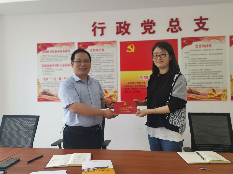 会上,根据党员发展程序及要求,支部大会讨论并接收了孔姗姗同志为中共预备党员。支部书记沈晓伟为房继茹同志颁发政治生日卡,对她入党十年表示祝贺,希望在今后工作中,时刻牢记党的宗旨,永葆共产党员先进性。