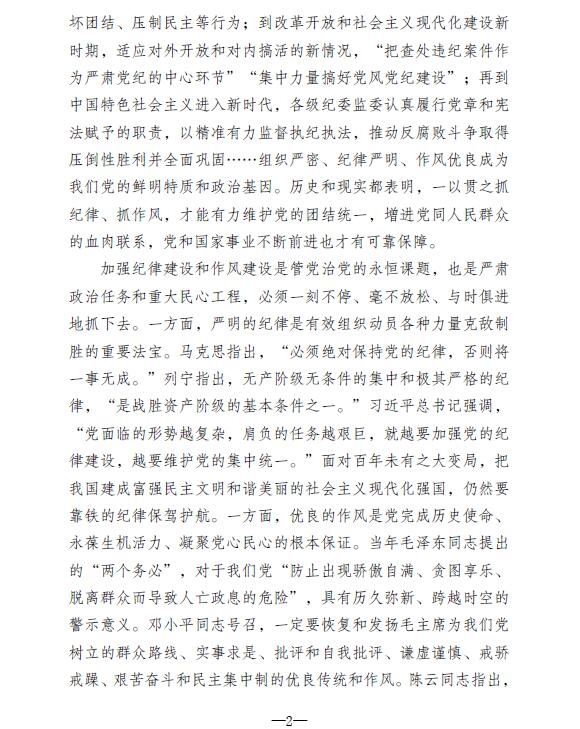 2021年廉文荐读第13期——坚持不懈抓纪律抓作风