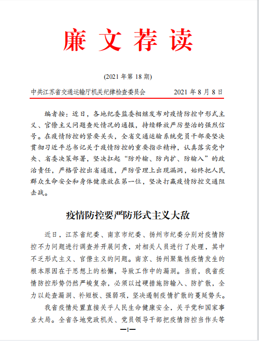 2021年廉文荐读第18期——疫情防控要严防形式主义大敌
