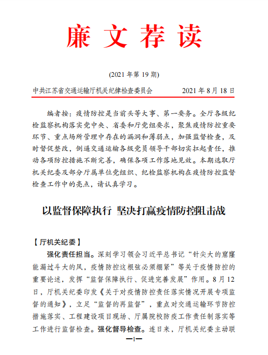 2021年廉文荐读第19期——以监督保障执行 坚决打赢疫情防控阻击战