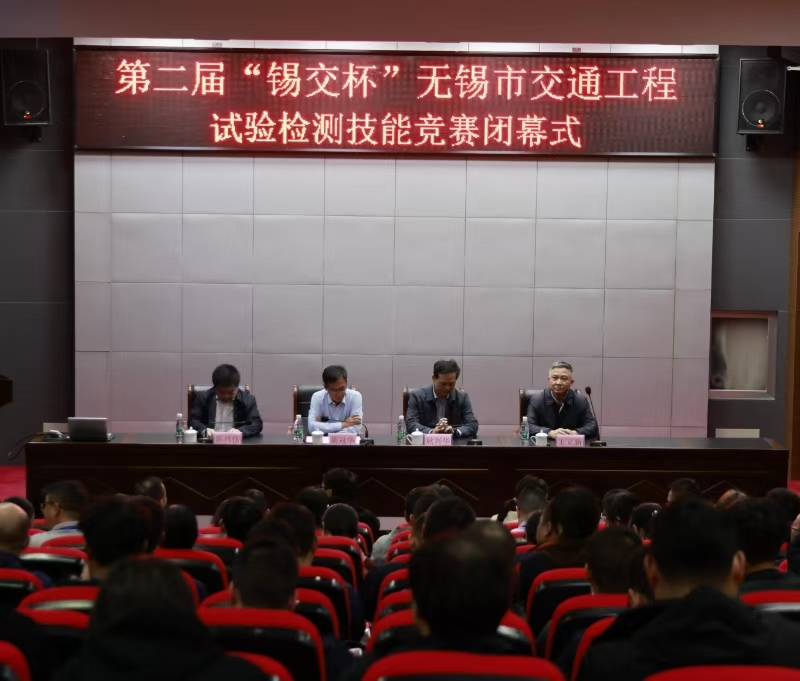 10月20日下午,第二届“锡交杯”无锡市交通运输系统职工交通工程试验检测技能培训及技能竞赛在我校学术报告厅顺利闭幕。本次活动由无锡市交通运输局主办,参加仪式的有副局长周冠华、陈昌伟四级调研员、王立新主席、建管处处长吴达卫,学校耿兴华副校长及学校交通工程学院领导、参赛的十四支代表队共五十余名选手参加闭幕式。
