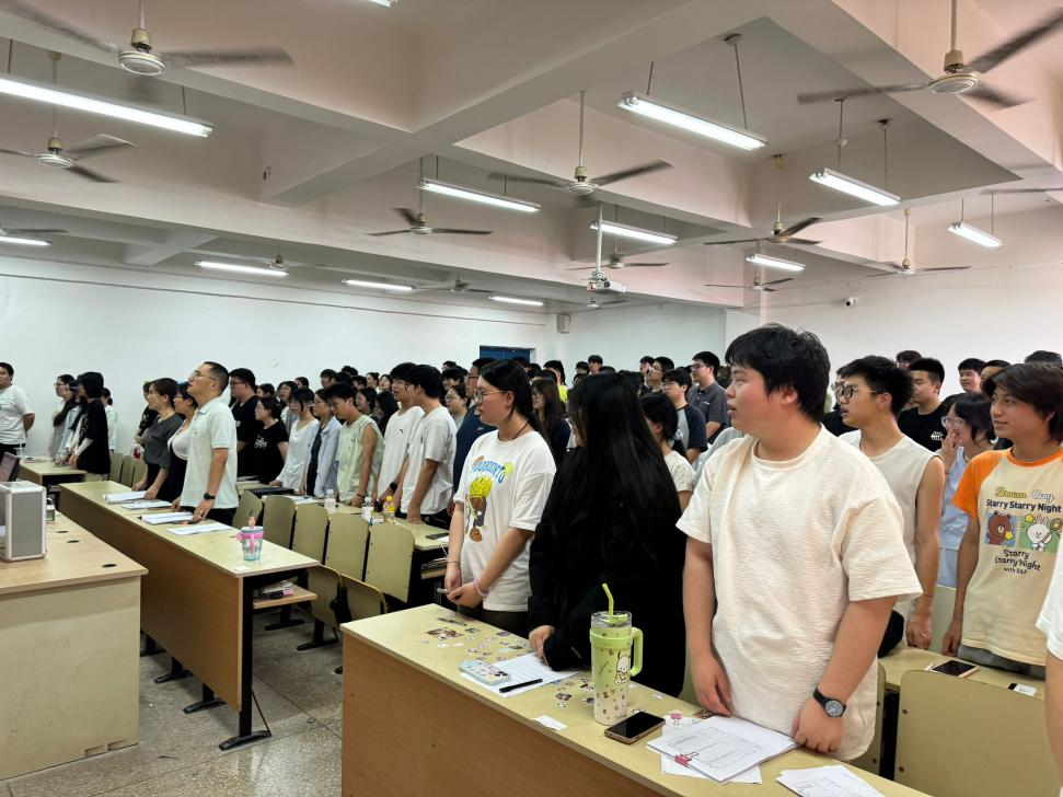 大会在庄严的国歌声中拉开帷幕。全体与会人员起立,齐声高唱中华人民共和国国歌,激昂的旋律激荡着每一位师生的爱国情怀与奋斗热情。