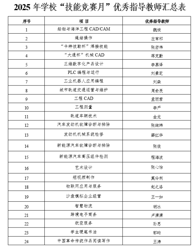 附件二:2025年学校技能竞赛月优秀指导教师汇总表