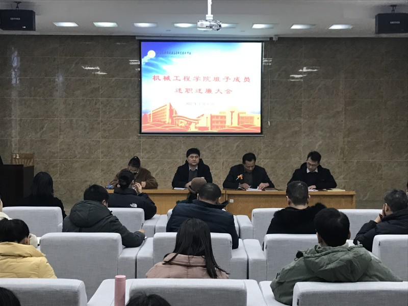 为认真落实校党委关于做好2021年度考核民主测评工作的要求,2022年1月6日下午,机械工程学院在职工之家召开领导班子成员述职述廉大会。校纪委书记邢勇,校组织人事处副处长王意修出席会议。会议由机械工程学院党总支副书记吴淼主持。
