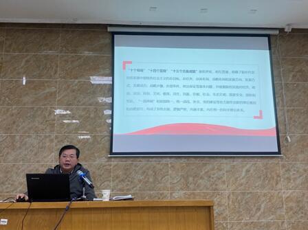 专题党课上,范次猛副校长解读了习近平新时代中国特色社会主义思想内涵,强调了开展学习贯彻习近平新时代中国特色社会主义思想主题教育的总要求和根本任务,结合学校实际,阐述了学校从“领航”走向“双优”的生态建构。