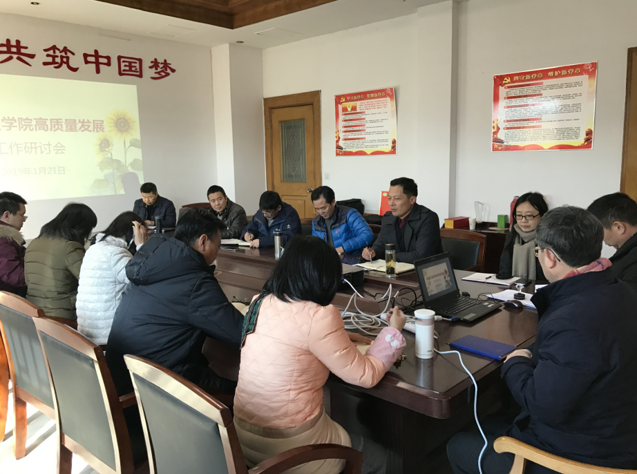 下午,在综合楼会议室召开了学院高质量发展工作研讨会,会议由邢副院长主持。院部领导、学院二级机构负责人及其他行政人员参加了会议。各位与会人员就学院高质量发展问题献计献策,并对学院的专业建设、学工建设等展开热烈的讨论。