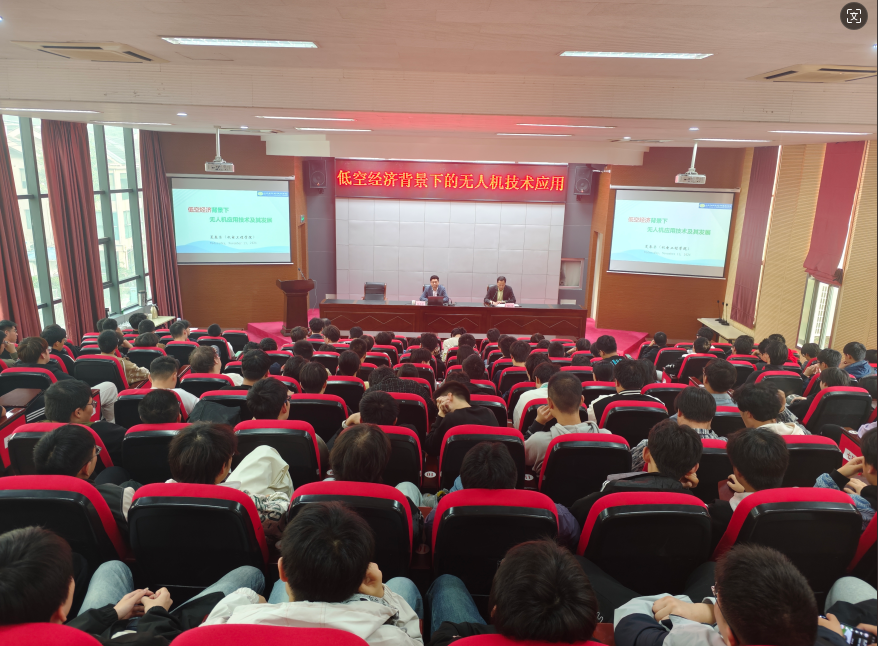 11月13日下午,机电工程学院院长夏春荣教授在校学术报告厅为全校师生做“低空经济背景下无人机应用技术及其发展”专题讲座,近180名师生到场聆听。讲座由科技与合作处负责人邢木清主持。