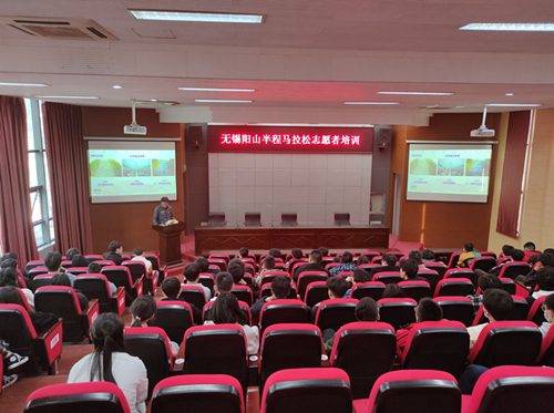 为进一步做好2021年无锡阳山半程马拉松赛事志愿服务工作,确保赛事圆满举行,3月23日下午,我校无锡阳山半程马拉松志愿者培训在学术报告厅举行,全校86名志愿者参加了本次培训。