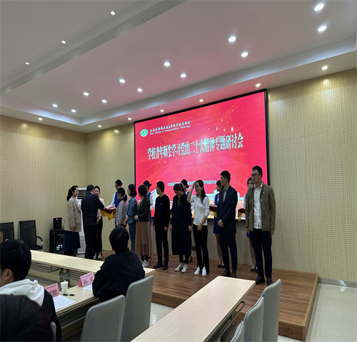 党委宣传部副部长、团委副书记熊睿传达了团中央《关于全团认真学习宣传贯彻党的二十大精神的通知》要求,校团委副书记孙霞在发言中对如何贯彻落实团中央部署要求,如何抓好各级团学组织、各学生社团学习贯彻党的二十大精神作了深入交流。