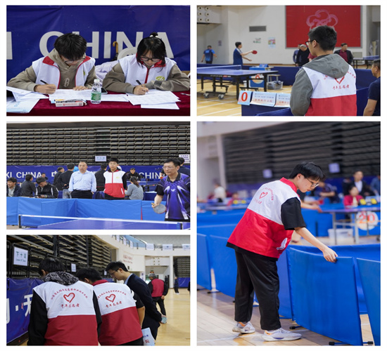 机动组主要由学校青年志愿者协会45名同学担任,他们布置场地、道路指引、整理球台、播报赛事……在看不见的角落,总有身着红色马甲的青年志愿者在默默的付出。