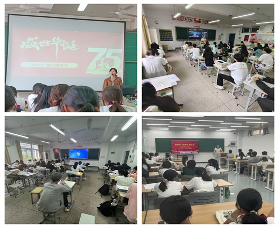 各班级开展爱国主题班会,班主任以各种形式引导学生讨论国庆节的意义,分享爱国故事。激发同学们热爱祖国、热爱中华民族的感情,培养他们为强国复兴而认真学习、努力奋斗的信念。