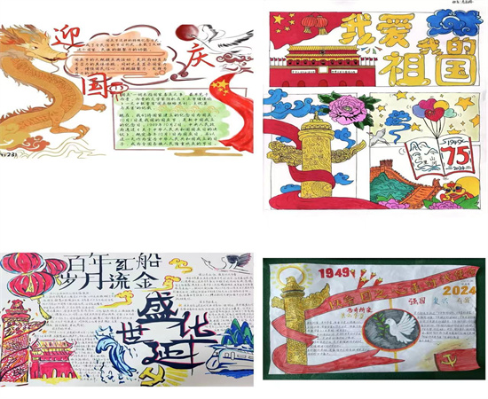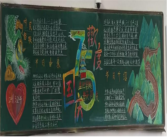 各班精心选材,细心编排,以画衬字,以图配文,同学们发挥想象用心描绘,一张张手抄报、黑板报都别有风采,展现出我校学生良好的精神风貌和对祖国母亲深深的祝福。