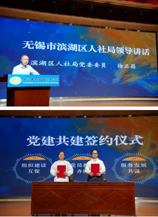 接着,滨湖区人社局党委委员徐正昌从劳动关系治理的专业视角,为学生朋友们分享劳动法治的重要性并作青年寄语,期望大家做“湖湾发展”的思考者,做“创新实践”的行动派。党建引领聚合力,校政合作谱新篇。活动中,物流管理学院党总支与滨湖区人力资源服务中心党支部举行了党建共建签约仪式,标志着校政在党建与人才就业指导等领域的合作进一步深化 。