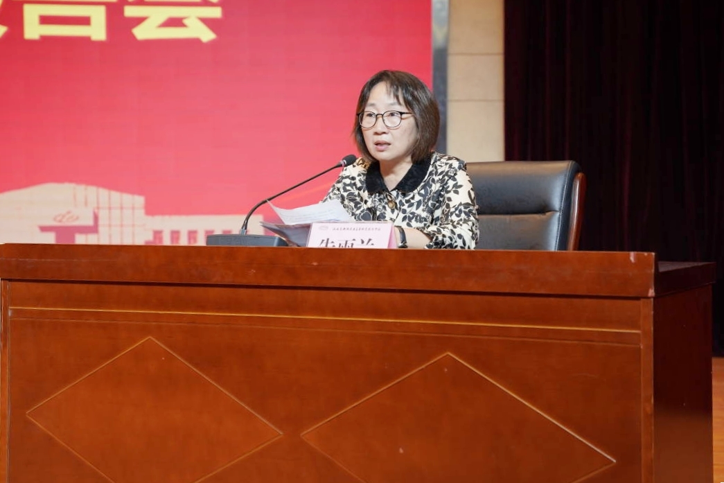 报告会,会议由党委副书记、五级职员朱雨兰主持。