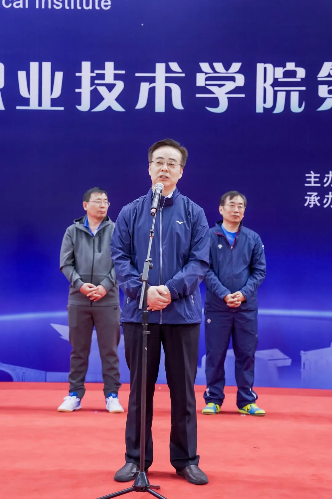 4月22日,由江苏联合职业技术学院主办,学校承办的江苏联合职业技术学院第十五届“院长杯”乒乓球比赛在无锡新体隆重开幕。江苏省交通运输行业党委副书记、一级巡视员汪祝君,江苏联合职业技术学院党委书记夏成满,江苏联合职业技术学院院长、党委副书记刘克勇,无锡市教育局副局长任克奇,江苏联合职业技术学院党委委员、副院长陶向东、李爱芬,江苏联合职业技术学院党委委员张益飞,学校党委书记、校长李虎,比赛裁判长、国际级裁判贾文等领导出席开幕式。开幕式由江苏联合职业技术学院党委副书记、纪委书记沈世江主持。