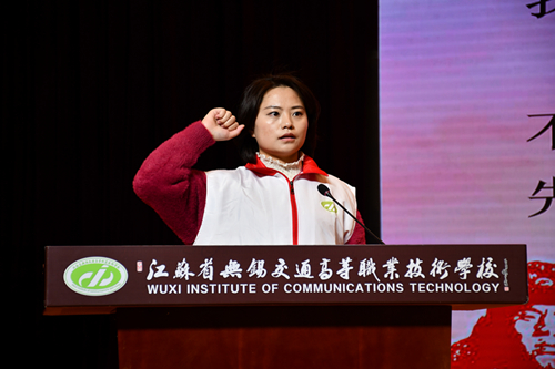 仪式上,第六批江苏省岗位学雷锋标兵、船舶工程学院实训教师陆琪作为志愿者代表宣读了《志愿者倡议书》,全体志愿者一起重温了中国志愿者誓词。