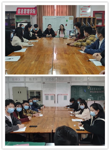 3月3日中午12点,信息管理学院学生会在政德楼学生会办公室召开新学期学生干部培训会议。学院团总支书记朱沛老师,学工办干事王得雪老师,主席团成员和各部门部长、副部长参会,会议由朱老师主持。