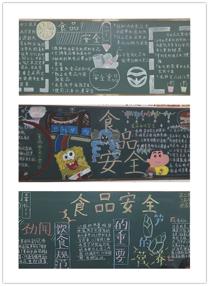 此次黑板报知识涉及健康饮食、疾病预防、食品安全等内容。各班板报主题鲜明,设计精美,达到了很好的宣传教育作用。此次活动进一步宣传普及食品安全法规和科学饮食知识的同时,更全面培养学生的食品安全意识,保障学生身心健康。既让每一位学生知道食品安全是大事,又帮助学生养成良好的饮食卫生习惯,安全消费,远离不健康食品。