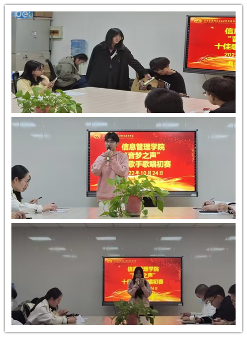 为丰富学生的课余生活,激发同学们的兴趣爱好,营造积极健康的校园文化氛围,展现学生阳光向上的精神风貌。2022年10月24日中午12:30,信息管理学院在正德楼三楼会议室举办“十佳歌手”初赛。学校合唱团指导老师周琪、张婉杰担任评委。