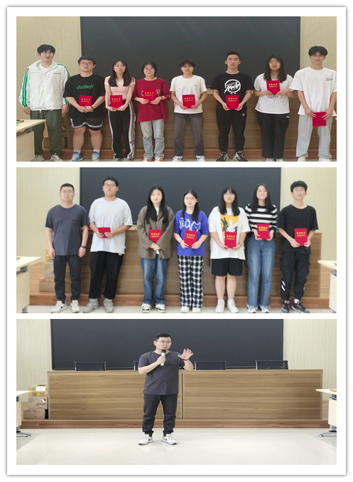 朱沛老师和丁阳老师分别宣读了2022年度学院“两红两优”“三好学生”“优秀学生干部”名单,并向被表彰的学生代表颁发了荣誉证书。朱老师对本次大会受表彰的同学表示鼓励与祝贺,希望获得表彰的同学戒骄戒躁,不断进取,不忘初心、牢记使命,以榜样的精神引领砥砺前行。同时号召学院其他同学们要向先进典型学习,要坚定理想信念,志存高远,脚踏实地,勇做时代的弄潮儿,在实现中国梦的生动实践中放飞青春梦想。