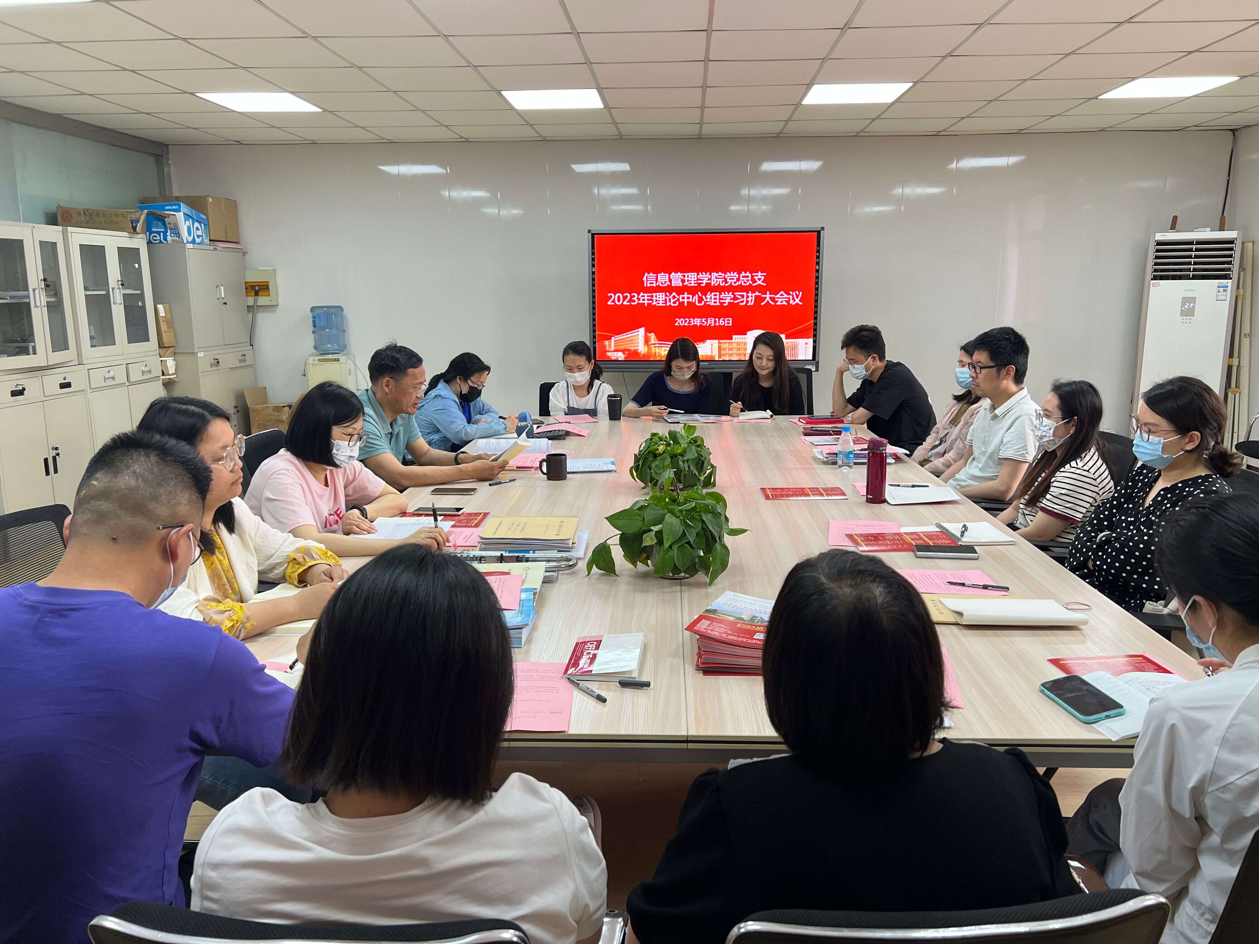 信息管理学院党总支2023年5月16日下午在学院会议室召开5月份理论学习中心组(扩大)会议,学院领导、全体党员和教职工参加会议。