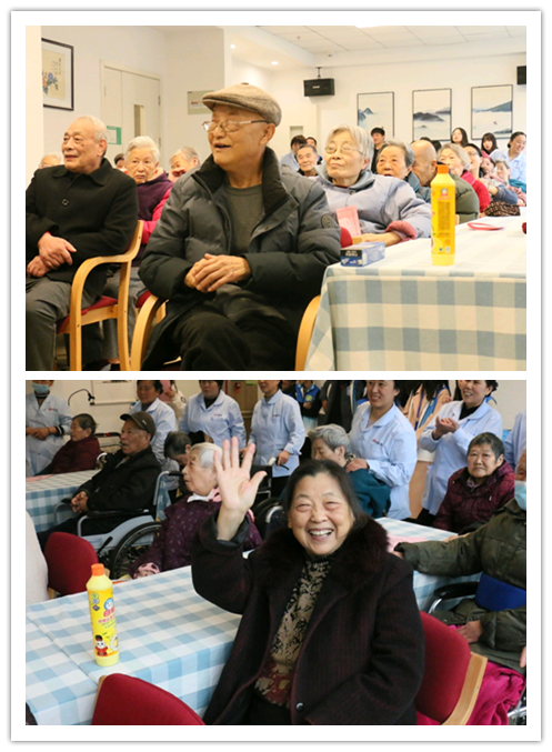 开场舞蹈《你看你拉住我的模样》、小品《打扑克》、街舞《Popping》点燃了会场的气氛;相声《高矮胖瘦社》逗得全场哈哈大笑;啦啦操《风吹一夏》、舞蹈《桃花朵朵开》勾起老人对青春年华的回忆;诗歌朗诵《爷爷奶奶》展现出志愿者对老人的尊敬与关怀,老人们感动得热泪盈眶;独唱《这世界那么多人》、弹唱《遇见》展现了新时代青年勇于追梦的毅力与不忘初心、牢记使命的坚定信念……除了精彩纷呈的节目外,志愿者们还准备了猜谜语和“添一笔”等小游戏,并精心准备了奖品,老人们积极参与。现场气氛火热,大家其乐融融地聚在一起,老人们也享受到天伦之乐。