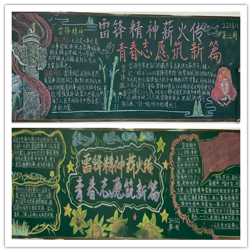 为传承和弘扬雷锋精神,培育学生文明素养。3月10日,信息管理学院开展以“雷锋精神薪火传,青春志愿筑新篇”为主题的黑板报评比活动。