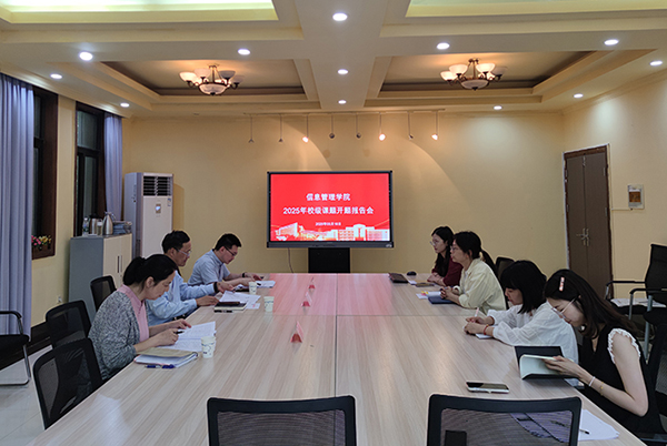 5 月 16 日信息管理学院举行校级课题开题工作,邀请学校图文信息中心郑智飞主任、机电工程学院俞浩院长、机电工程学院李荣芳老师担任开题专家。会上,王明轩、杨际略两位校级课题主持人分别就各自课题进行汇报,从研究背景、目标、内容及方法等方面展开阐述。专家对汇报内容提出针对性意见与建议,助力完善课题设计。