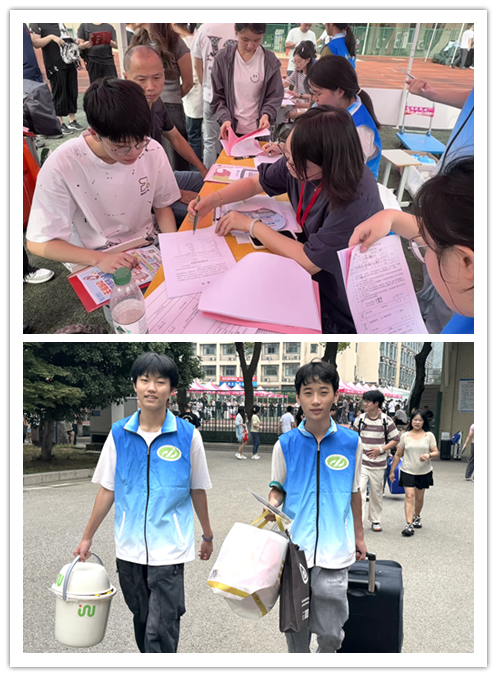 迎新现场秩序井然,整齐排列的报道帐篷、迎风舒展的迎新海报,营造出热烈又温馨的氛围。学校党委书记李进等校领导亲临学院迎新点,实地查看报道流程,为新生入学“把好关、服好务”。现场师生分工明确、协作高效。老师和志愿者们耐心解答新生及家长疑问,细致指引报到流。志愿者们面带微笑,主动帮新生搬运行李、引导路线,用行动践行服务初心。这一幕幕师生同心的暖心场景,不仅彰显了信息管理学院的责任担当,更生动诠释了“奉献、友爱、互助、进步”的志愿服务精神,赢得了新生与家长的一致好评。