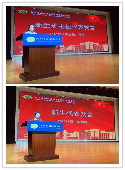 仪式伊始,全场肃立奏唱国歌,随后新生观看学校宣传视频,加深对学校及专业的认知。在助理班主任聘任环节,班主任为受聘者颁发证书,期许其助力班级建设与新生适应。班主任代表周琪老师发言,鼓励新生树立理想、珍惜时光,以昂扬态度开启大学生活;251611 班新生陈湘菱分享入学喜悦与憧憬,展现新生朝气。学院副院长陈妍寄语新生:尽快调整心态完成角色转变,认真学习、勤奋刻苦,在思想与言行上全面提升。最后,副校长王珏讲话,王校长勉励信息学子,当以实践为舟、奋斗为桨,在躬身践行中充实学识、锤炼本领,既要怀揣敢担重任的赤子之心,亦要练就善作善成的过硬本领。