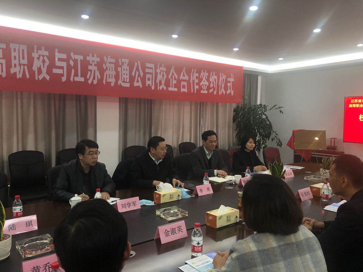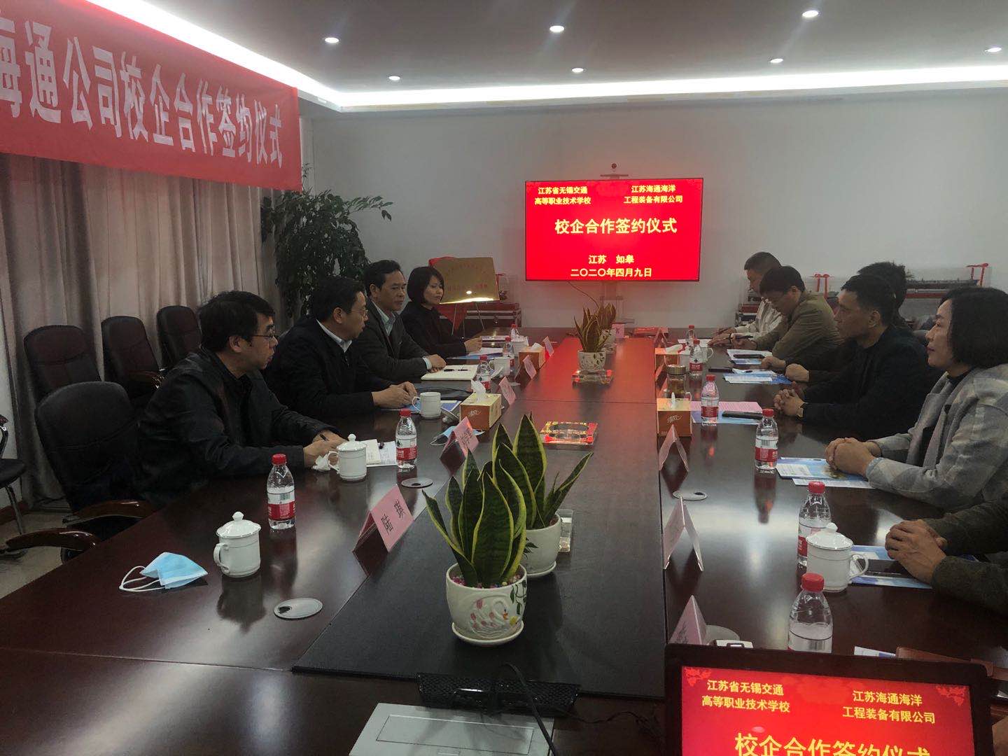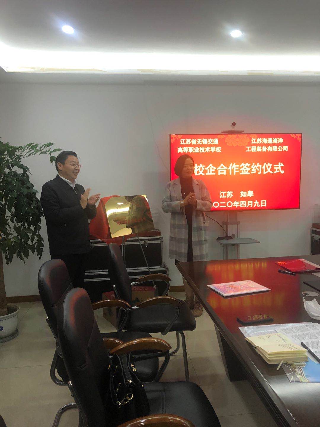 4月9日,学校与海通海洋工程设备有公司校企合作签约暨揭牌仪式在海通海洋工程设备有公司会议室举行。学校党委书记李虎、副校长耿兴华、招生就业处处长刘学军、船舶工程学院院长吴志亚、如皋市长江镇党委委员赵银山、长江镇组织人事和社会保障局局长阮铁均、如皋市港城实验学校初中部副校长黄乔兵、江苏海通海洋工程装备有限公司法定代表人金淑英、副总经理崔建新等出席活动。活动仪式由企业副总经理崔建新主持。