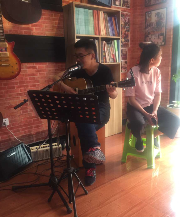马鑫同学是2016届毕业生,从最初入校后偶然接触到吉他,就深深的喜欢上吉他弹奏。当下爱好音乐的人和想要会简单弹唱的年轻人越来越多,吉他、贝斯等时尚的乐器受到越来越多的人的青睐。实习时间,经过周密的市场调研后,马鑫同学决定自主创业,创建吉他音乐工作室。琴行名为拾音琴行,琴行的主要经营项目是乐器的销售,还兼有乐器的培训,设备的租赁,以及应顾客特别需要提供的CD/VCD录制编辑,乐队小样录制,音乐剪辑合成等经营项目。经过近一年的经营,琴行在无锡音乐工作室中已出具规模,是一家师资力量过硬,艺术氛围良好的,以电声为主,培训销售一体化的琴行,马鑫同学正与他的团队在音乐的道路上一路前进!